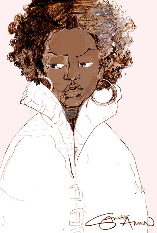 | "brownskin lady" pencil sketch, colored in photoshop. 2003 | ||||||||||||||||||||||||||||